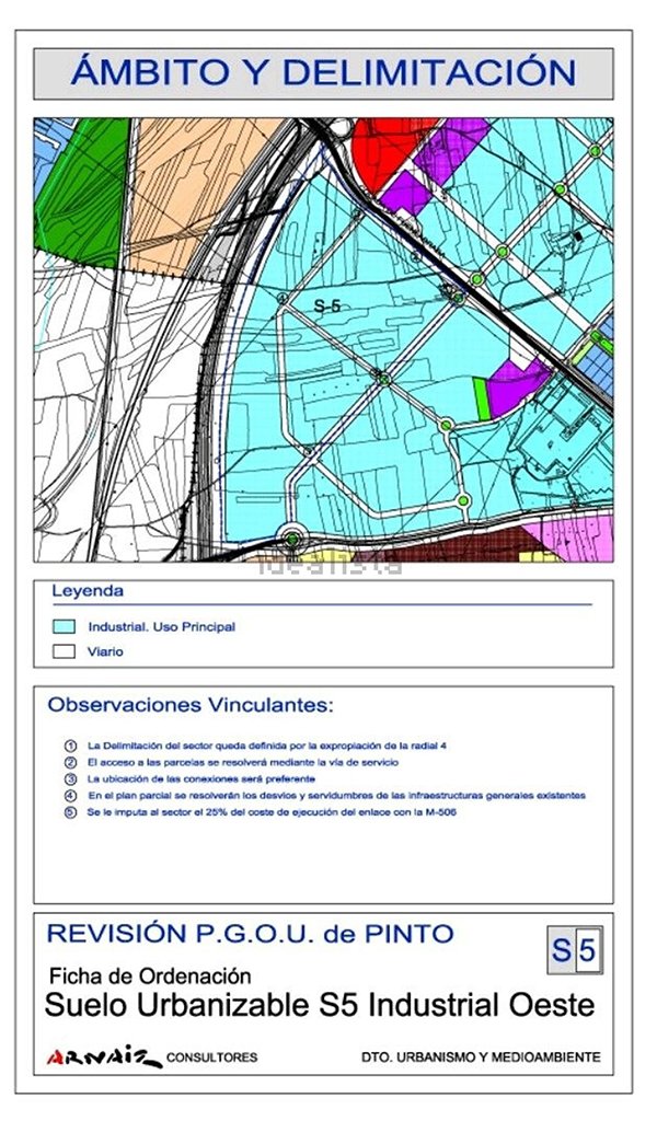Se venden varias parcelas industriales logisiticas, ubicadas en el poligono industrial Sector - 5 de Pinto. En total son 3 parecelas contiguas y con posibilidad de unir, de forma rectangular, con las siguientes superficies unitarias: 1.800m2, 1.700m2 y 3.297mz. El precio es 230€/m2, por tanto los precios totales quedan como siguen: